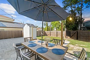Outside, you'll enjoy a paver patio with an umbrella-covered outdoor table and seating in our private fenced backyard. On cooler nights, you'll love sitting around the firepit to relax.